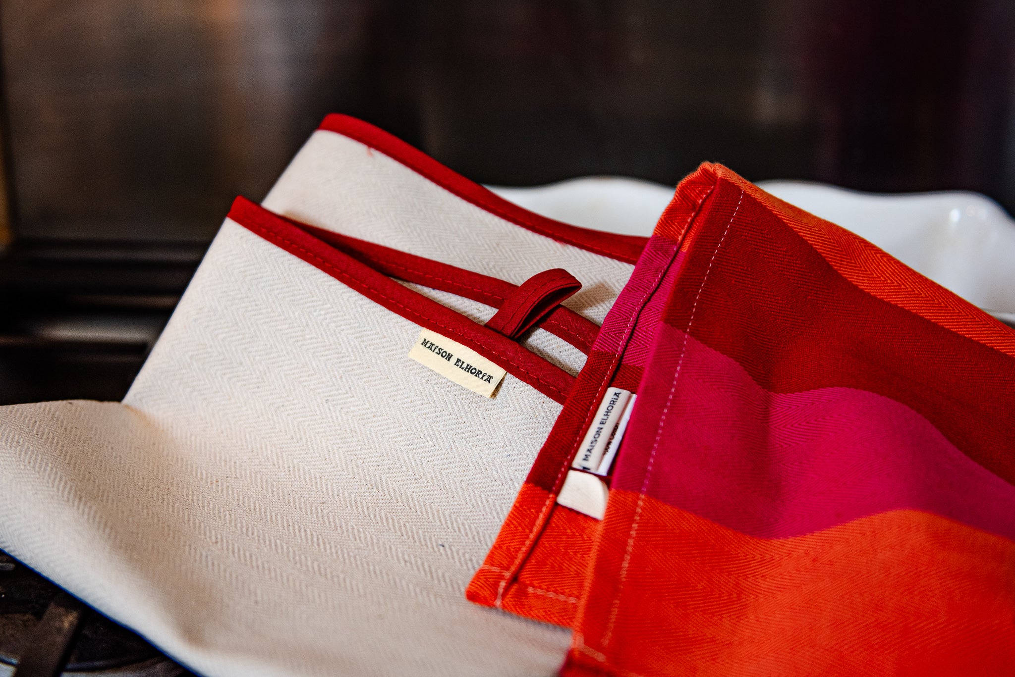 Feel good textile products, traditionally made in the UK, with a unique French Basque twist: |Shop colourful oven gloves, Chefs Pads for Aga range cookers, Towels for the kitchen and bathroom, wash bags, bespoke tablecloths, table runners & napkins ...